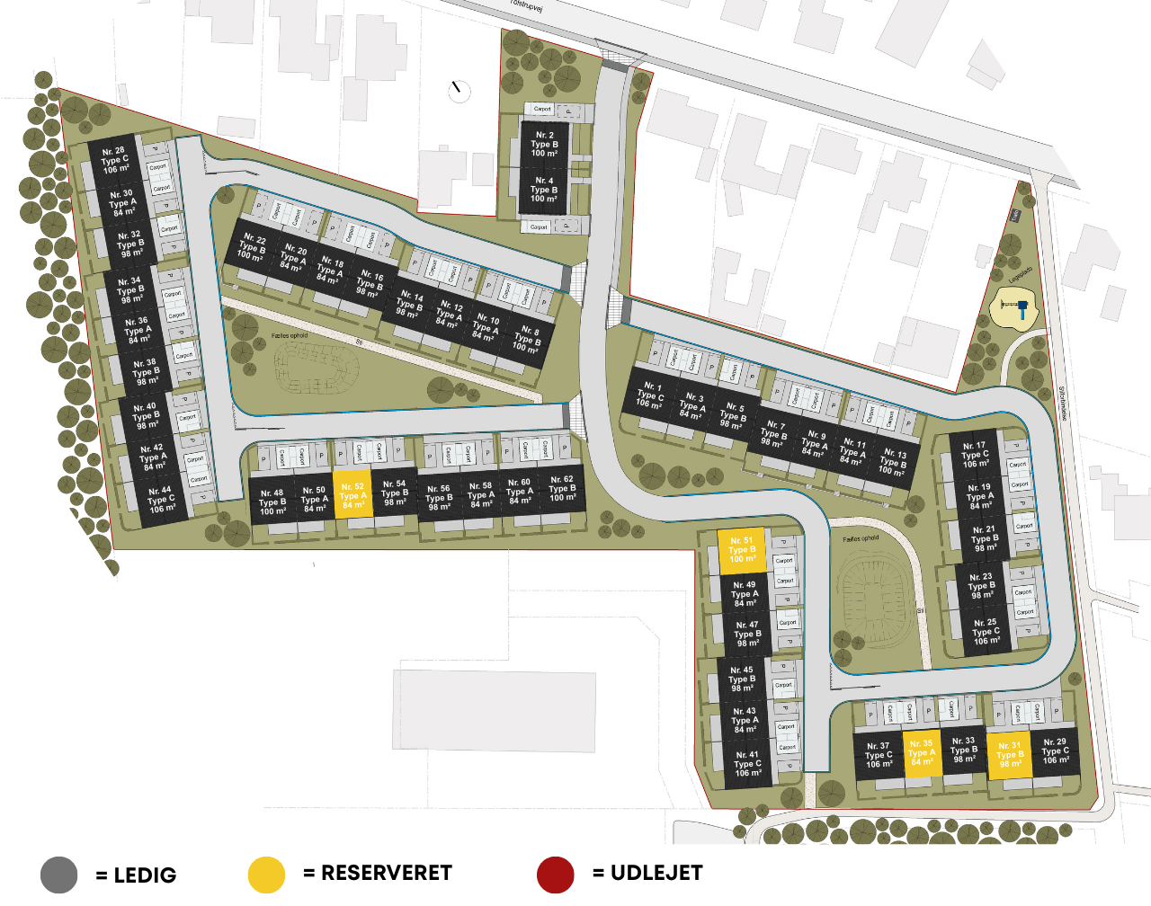 De kommende boliger på Rødbøgen i Brønderslev består af 50 velindrettede rækkehuse fordelt på tre velindrettede boligtyper på mellem 84 - 106 m², fordelt på 3 til 5 værelser.